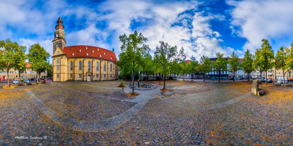 360°-Panorama – Calenberger Neustadt in Hannover: an der Neustädter Hof- und Stadtkriche St. Johannis