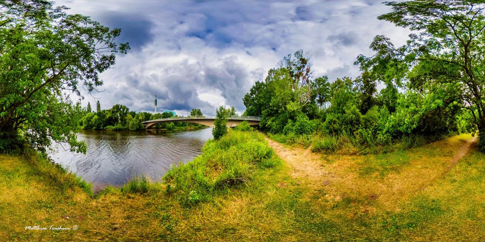 360°-Panorama – An der Leine in Hannover zwischen den Stadtteilen Nordstadt und Linden