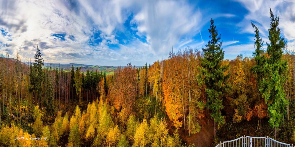360°-Panorama – Deister: herbstlicher Blick vom Belvedereturm ins Weserbergland (Auetal)