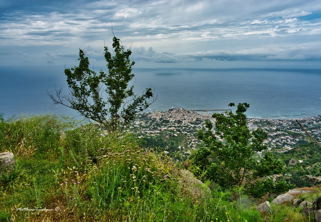 Ischia: Die grüne Insel im Golf von Neapel: Blick vom Hang des Epomeo (789 m ü. NHN) zum Meer an einem bewölkten und regnerischen Frühsommertag